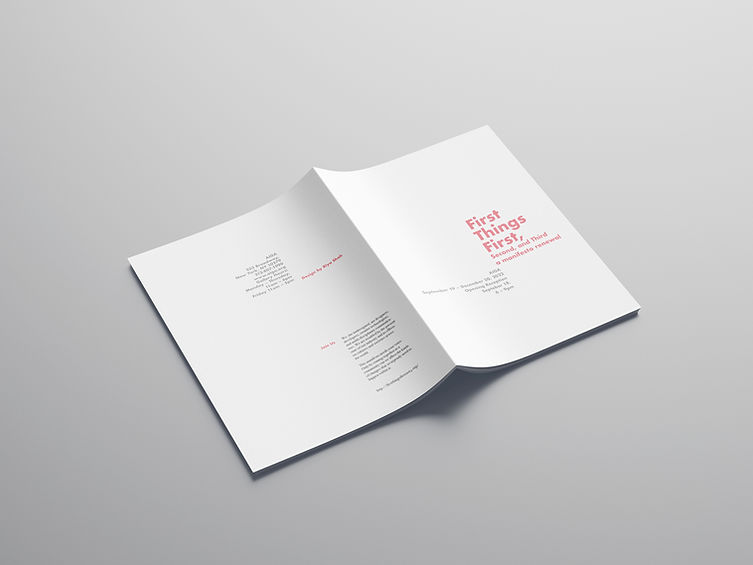 A booklet designed for the AIGA exhibition titled First Things First, Second, and Third: a manifesto renewal, serving as an informational program for persons attending the exhibit.